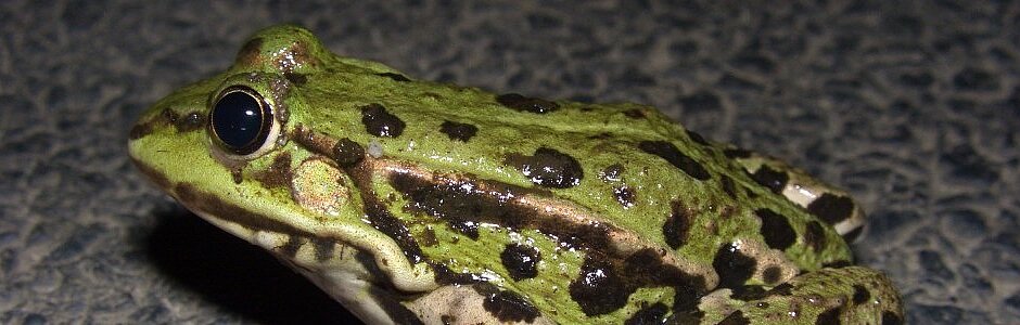 | Teichfrosch | Hybridform aus Seefrosch und Kleinem Wasserfrosch – zusammen mit den Elternarten fast flächendeckend verbreitet |