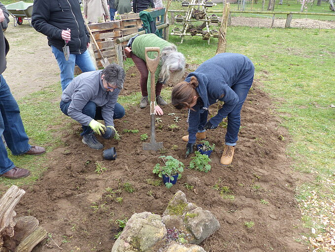 Da jedoch rein theoretisches Wissen nur bis zu einem gewissen Punkt helfen kann, durften alle Teilnehmenden zusätzlich zu den Vorträgen auch selbst einmal tatkräftig anpacken. So legten sie gemeinsam ein insektenfreundliches Beet an, bauten ein Hochbeet vom Zusammenschrauben der einzelnen Bretter bis hin zur Bepflanzung, und legten selbst einen Naschgarten von circa 100 m² an. Besonders über diesen praktischen Teil waren viele der ErzieherInnen und LehrerInnen sehr froh. Eine Teilnehmerin erklärte, dass sie nun viel weniger Sorge hätte, ein solches Projekt an ihrer Schule selbst in die Hand zu nehmen.