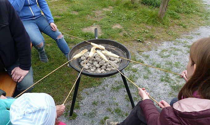 Besucher entdecken verschiedene ANgebote auf dem Hof.