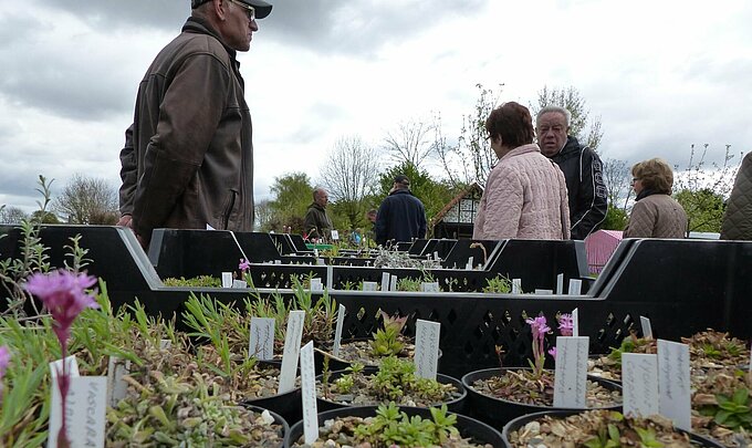 WIe bei jeder Pflanzenbörse stehen viele verschiedene Pflanzen zum Kauf oder Tausch bereit.