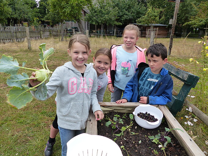 in Exkursionen wie dem „Naturerlebnis Teich“, der Kleintiersafari oder der Waldwildnis konnten die Teilnehmenden sich wie richtige Naturforscher fühlen. Hier ging es mit Keschern oder Becherlupen bewaffnet direkt in die Natur – spannend und ein großer Spaß! Und auch die Bienen konnten aus nächster Nähe kennengelernt werden: Im "Naturerlebnis Biene" wurde gespielt und Honig probiert. Zusätzlich konnten die Kinder dank des Besuchs des Imkers Detlef Vaessen direkt in den Bienenstock hineinsehen.