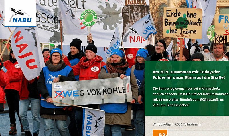 Für ein wirksames Klimaschutz-gesetz. Bitte machen Sie mit! Der NABU ist dabei.