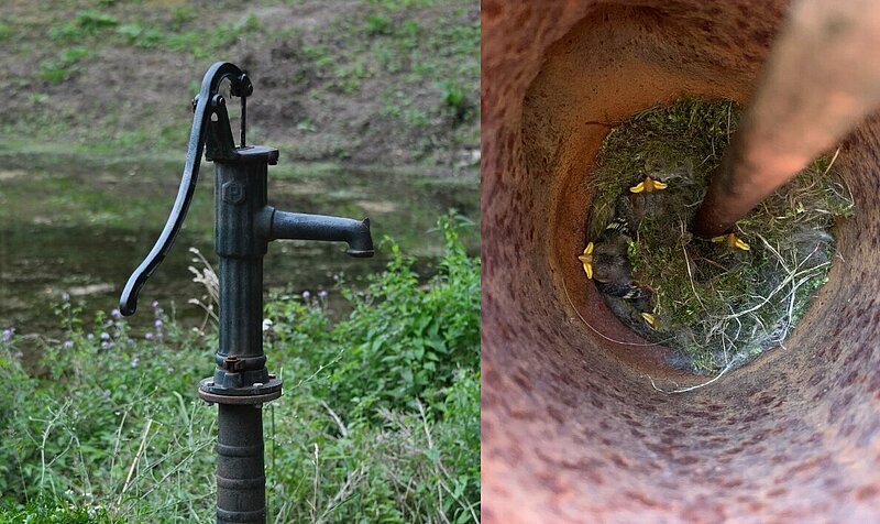 Eigentlich ist diese Gartenpumpe nichts besonderes in unserem Naturerlebnisgarten. Doch dieses Jahr .....