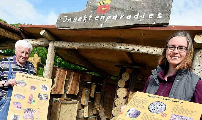 Für das Team ist es eine Herzensangelegenheit, dem Insekten- und Bienensterben ein Ende zu machen. „Über die Hälfte von den knapp 570 Wildbienenarten ist vom Aussterben bedroht“, sagt Mitarbeiterin Alina Martin. Eine Vielfalt aus Pappröhrchen, Ziegelsteinen, bearbeiteten Hölzern und Lehm soll den Bienen einen guten und sicheren Lebensraum schaffen.....weiterlesen