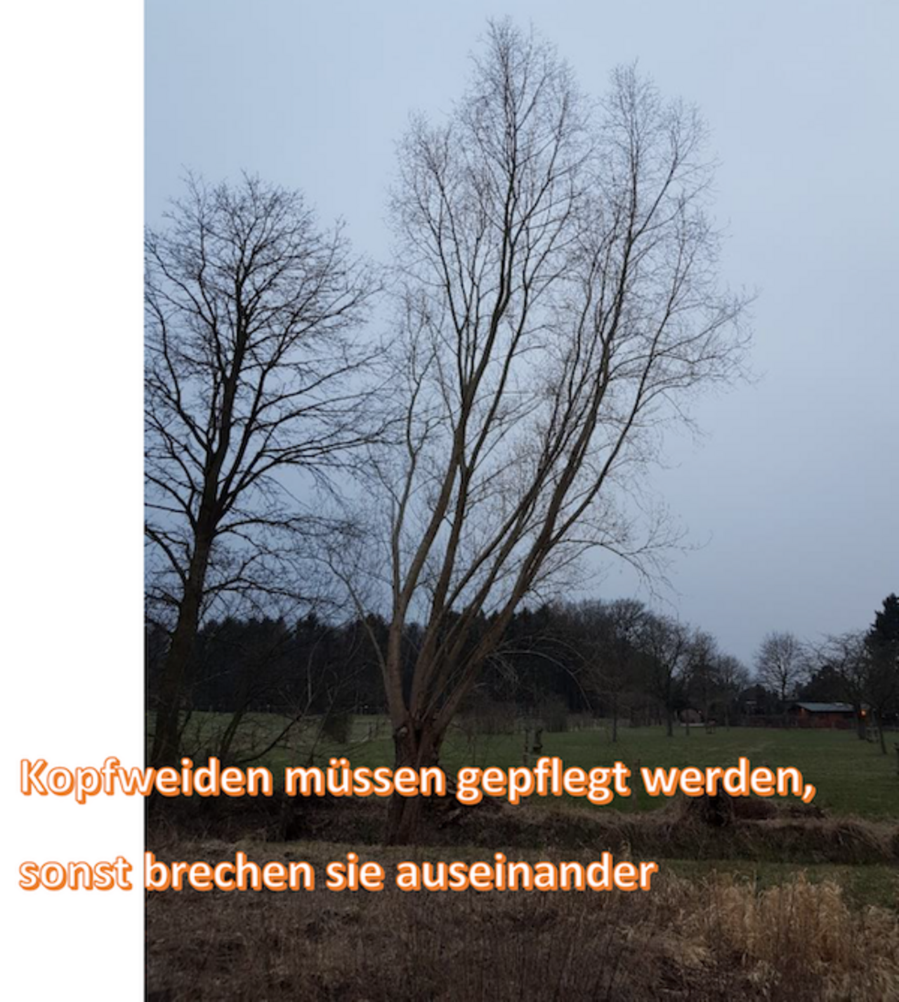 Jetzt kommen auch die Kopfweiden wieder zum Vorschein und wenn sie in den kommenden Wochen ihren Pflegeschnitt erhalten haben, wird unsere Fläche bestimmt zu einem Schmuckstück niederrheinischer Streuobstwiesenkultur.