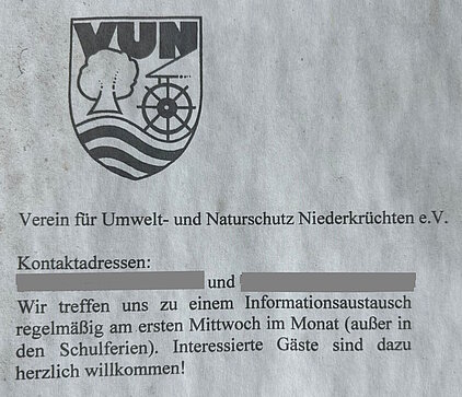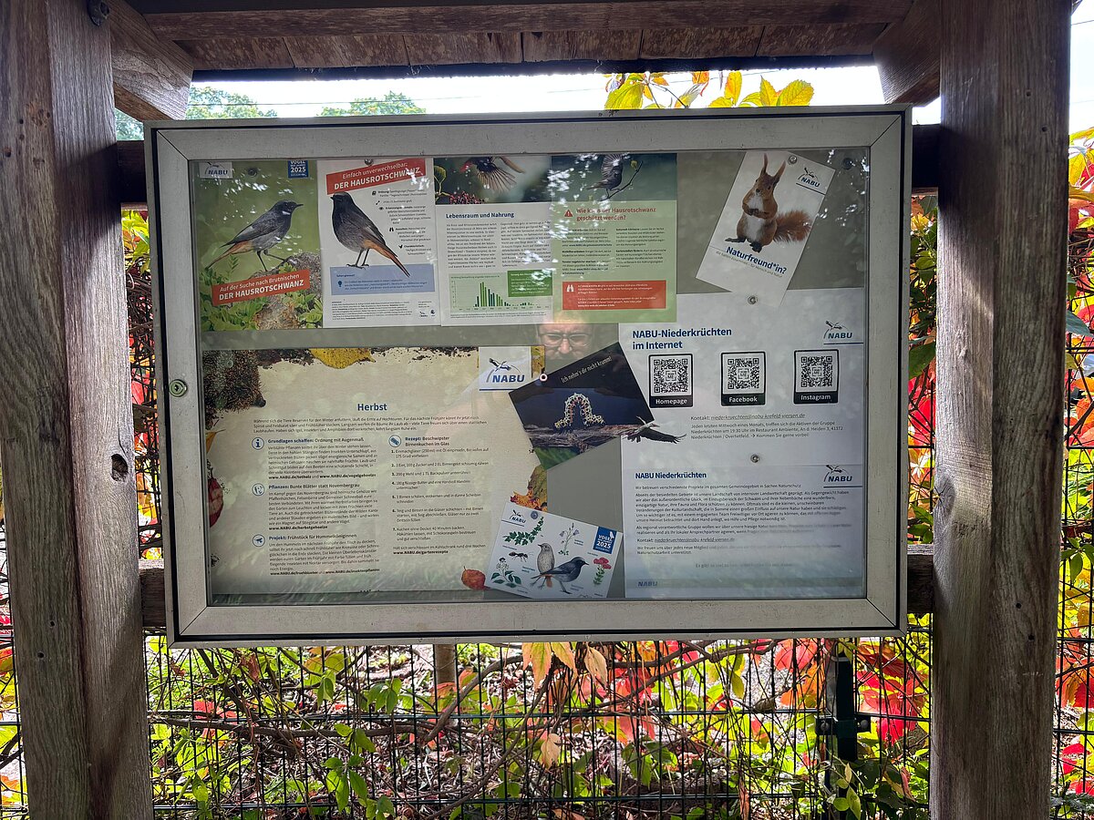 Den „VUN - Verein für Umwelt- und Naturschutz Niederkrüchten e.V.“ gibt es schon lange nicht mehr und viele ehemalige Aktive sind damals in der NABU-Gruppe Niederkrüchten aktiv geworden. Der wunderschöne Schaukasten fristet seitdem ein einsames und ungenutztes Dasein. Wir haben uns der Sache natürlich angenommen und uns ein Bild gemacht.
