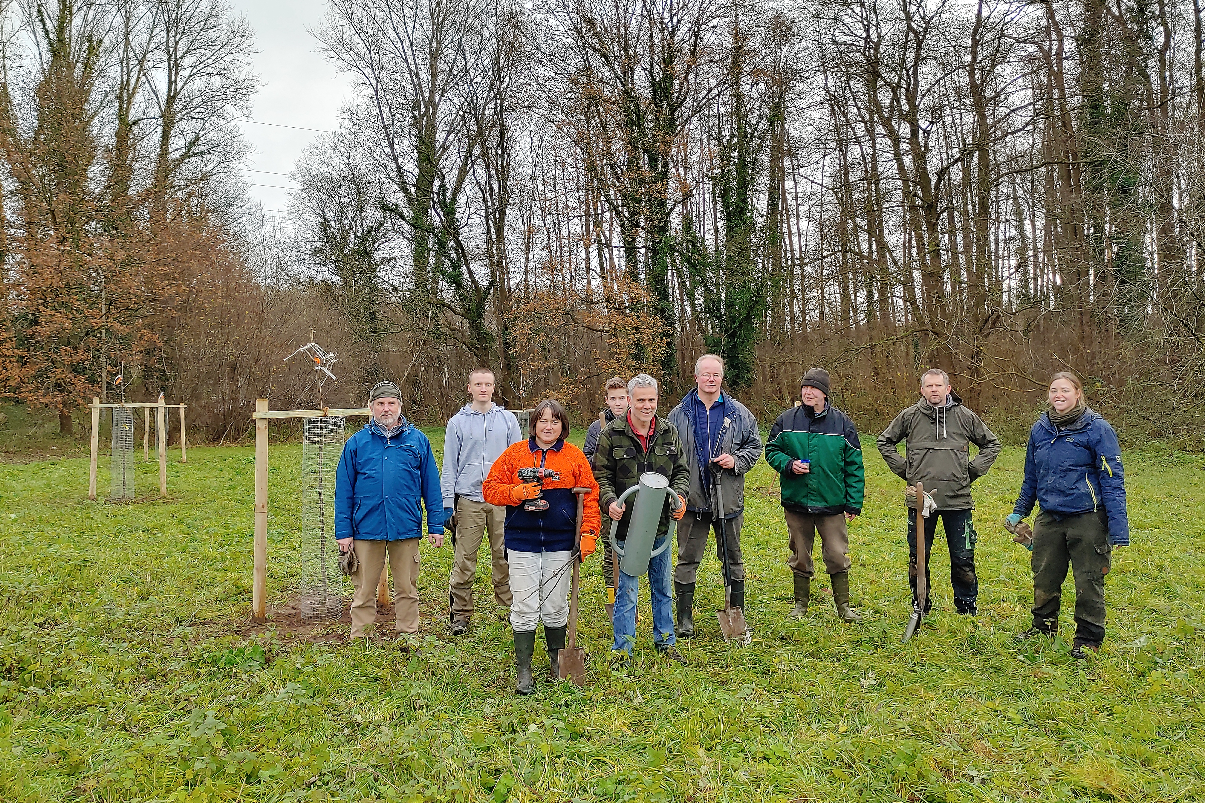 Diese unterschiedlichsten Aufgaben wurden vom 10-köpfigen Team Hand in Hand erledigt und so konnten wir nach etwa zwei Stunden Arbeit auf eine neu angelegte Streuobstwiese blicken.