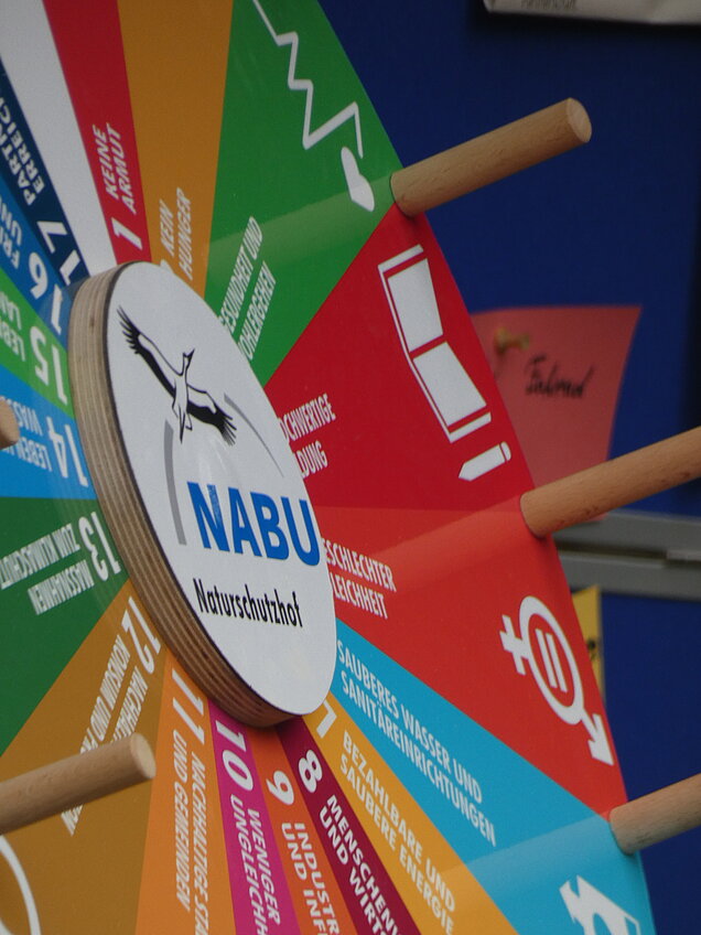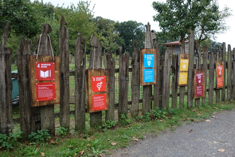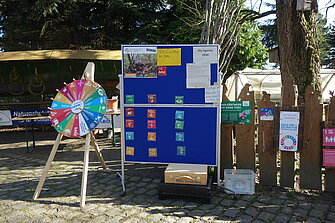 Die Besucherinnen und Besucher hatten die Möglichkeit, an einem „Glücksrad“ mit den 17 Zielen zu drehen. Wenn ein Besucher zum Beispiel drehte und das Rad auf dem Ziel „Kein Hunger“ stehen blieb, musste er dazu eine Frage beantworten. War diese richtig beantwortet, bekam er dafür einen Apfel von der hofeigenen Streuobstwiese mit dem besonderen Namen „Schöner von Elmpt“. Bei einer falschen Antwort durfte er sein Glück erneut versuchen.