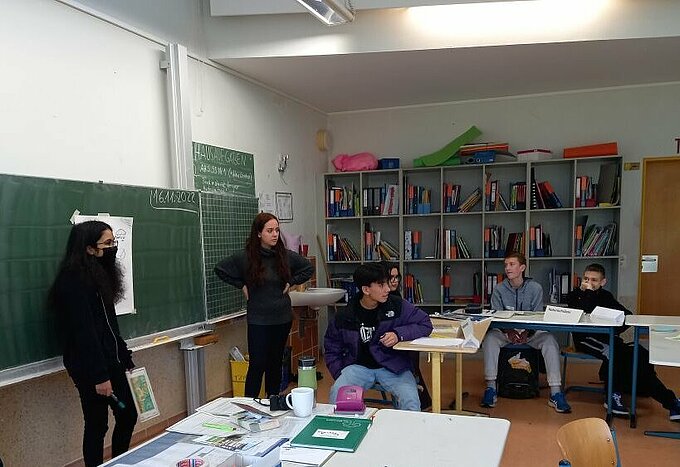 Die Schülerinnen und Schüler haben sich zunächst in Kleingruppen zu einer Position in der Diskussion vorbereitet. Dabei wurden die Materialien intensiv gesichtet und geplant, wie man in einer solchen Diskussion ab besten vorgeht. Manche Schülerinnen und Schüler mussten sich dabei erst in ihre Rollen finden, da sie persönlich ganz anderer Meinung waren. Aber mit Erfolg! Es wurde mit viel Herzblut in den Rollen diskutiert, gestritten und verhandelt. Letztendlich haben sich die Vertreter der einzelnen Gruppen auf einen Kompromiss geeinigt, mit dem alle Beteiligten einverstanden waren.