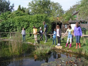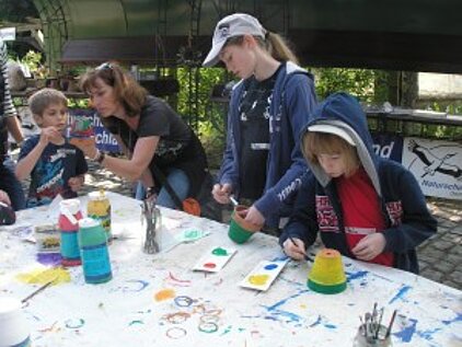 Groß und Klein erforschen beispielsweise mit Kescher und Becherlupe das spannende Leben im Gewässer, beim Naturerlebnis Vogelwelt erkunden die Kinder als Vogelkundler den Naturschutzhof und bauen Nistkästen für Meisen und Spatzen, Ostereier färben wir mit Pflanzenfarben und flechten Osternester aus Weiden.