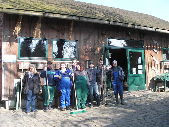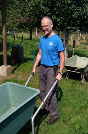 Zweimal wöchentlich hilft Herr Han (Ergotherapeut) mit rund sechs Bewohnern des Otto-Pötsch-Hauses, einem Wohnheim in Nettetal-Kaldenkirchen, bei der Pflege des Außengeländes.