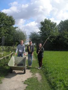 „Vor zwei Jahren habe ich eine Freundin während ihres FÖJs auf dem NABU Naturschutzhof Nettetal besucht und durch sie das Gelände des Hofes kennen gelernt und auch einiges über das FÖJ erfahren. Schnell wurde mir klar, dass ich die geplante Auszeit zwischen Abitur und Studium für ein FÖJ nutzen würde und das möglichst auf dem NABU Naturschutzhof Nettetal. Hier hab ich dann auch Anfang August mein FÖJ begonnen und wurde sofort offen und freundlich aufgenommen. Nun freu ich mich jeden Tag aus der Stadt raus zu kommen und hier bei der Biotoppflege, Führungen, Teichuntersuchungen, beim Verkauf, der Apfelernte und allem was sonst noch an Aufgaben anfällt zu helfen. Außerdem betreuen meine Kollegin Nora und ich unsere eigene Kindergruppe und sind auch sonst in die Durchführung anderer (Kinder-)Veranstaltungen stark mit eingebunden. Für die Zukunft sind auch noch eigene Projekte geplant, in denen wir unsere Pläne verwirklichen können.“ – Stefanie