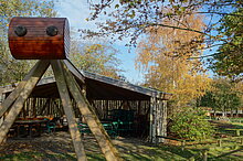 Angedacht ist außerdem eine neue Überdachung für die Sitzmöglichkeiten gegenüber vom Eingang zum Hauptgebäude des Naturschutzhofes. Das bisherige Dach dieses Außenbereichs, der während der Saison rege für Besprechungen und Gruppenarbeiten aller Art sowie als Pausenzone für die Mitarbeiter genutzt wird, ist inzwischen mehr als verschlissen. Überdies sind weitere Unterstellmöglichkeiten z.B. für Fahrräder geplant. Der Förderverein begleitet die Planung dieses Projektes. Sollten die dafür bewilligten Fördergelder nicht ausreichen, wird der Verein die Mehrkosten tragen.
