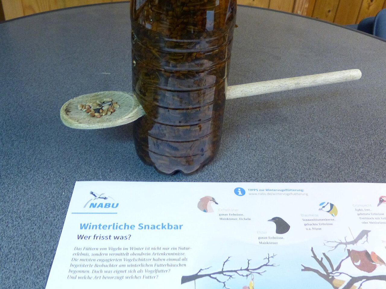 Durch den eigenhändigen Bau eines Futtersilos erfahren Kinder die Möglichkeiten, sich für den praktischen Naturschutz (Vogelschutz) einzusetzen und dabei den Verpackungsabfall wiederzuverwenden. Es werden einige Fakten zur Verpackungsabfall-Problematik in Deutschland vermittelt. Im Anschluss daran werden gemeinsam Ideen zur Bewältigung des Problems gesammelt. Die Futtersilos werden gemeinsam (auf dem Naturschutzhof) aufgehängt, verknüpft mit der Fragestellung, welcher Vogel welches Futter an welchem Ort benötigt. Damit werden Kenntnisse über verschiedene Vogelarten vertieft.