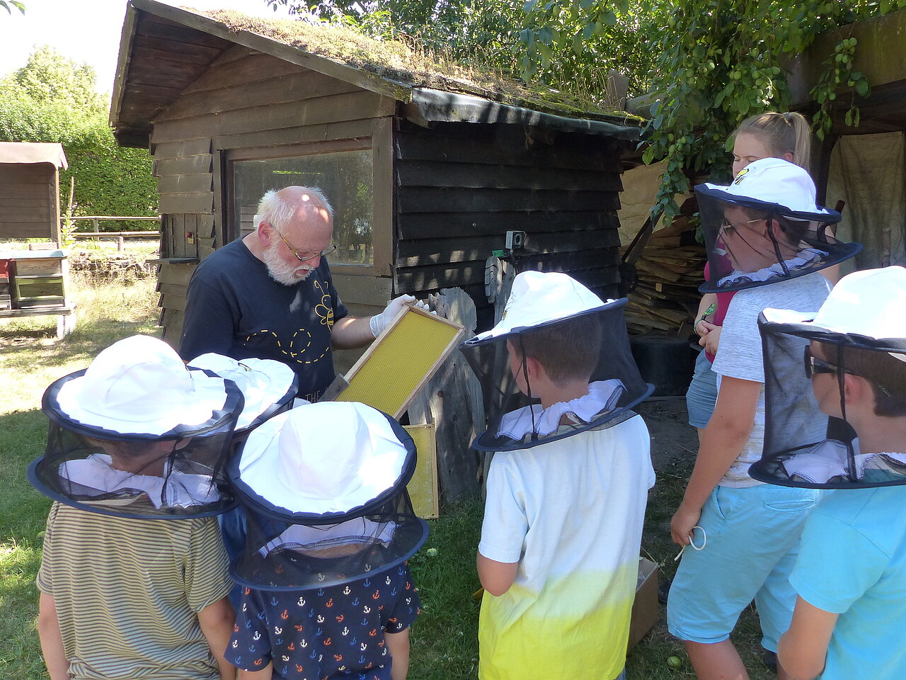 Wir erforschen an mehreren Stationen gemeinsam das spannende Leben der Honigbienen. Wie sehen sie aus? Wie entwickeln sie sich? Welche Tätigkeiten und Leistungen vollbringen sie? Was ist ihre wichtige ökologische Rolle und ihre Bedeutung für den Menschen? Die Produkte der Bienen lernen wir mit allen Sinnen kennen. Diese Veranstaltung kann auch in Kooperation mit dem Naturschutzhof-Imker stattfinden!