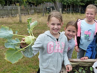 In dieser Veranstaltung lernen die Kinder, welche Lebensmittel im eigenen Garten und in der Natur wachsen. Welche Kräuter kann man essen und welche Gerichte können durch Kombinationen entstehen? Durch praktisches Arbeiten erhalten sie einen engeren Bezug zu den Nahrungsmitteln. Mit dem selbst geernteten Obst und Gemüse probieren sie einfache Rezepte, die sie zu Hause leicht nachmachen können. In Kleingruppen beschäftigen sie sich zusätzlich mit unterschiedlichen Fragestellungen zum nachhaltigen Konsum.