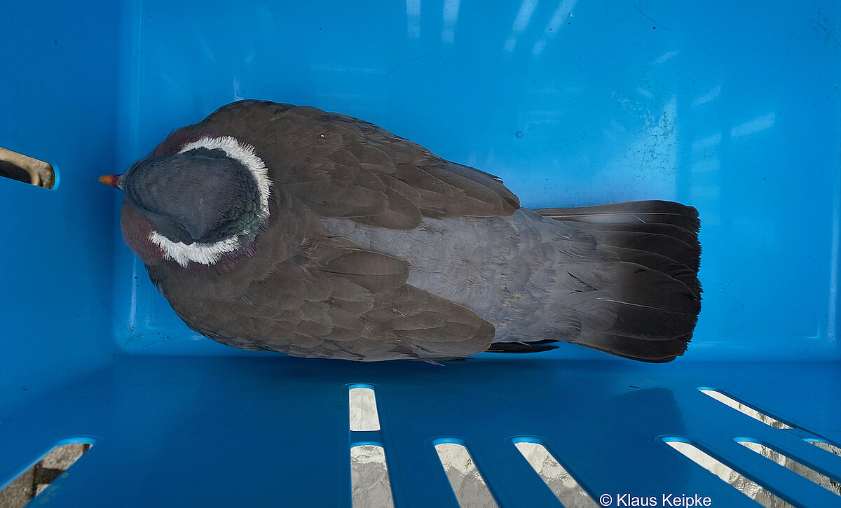 Eine Taube, die nicht mehr vor Menschen flieht, ist meist sehr krank. Man kann sie in den meisten Fällen mit einem beherzten Griff fangen. Läuft sie noch weg – wenn z.B. „nur“ ein Flügel gebrochen ist – hat es sich bewährt, sie in eine Ecke zu drängen und dann mit der Hand zu fangen oder eine Jacke etc. darüber zu werfen. Möglicherweise wehrt sie sich durch Flügelschlagen. Wenn Sie das Tier aber mit Ihrer Hand bzw. ihren Händen so umfassen, dass die Flügel am Körper anliegen, dann beruhigt sie sich in der Regel recht schnell. Bitte nie so fest drücken, dass dem Tier die Luft wegbleibt!
